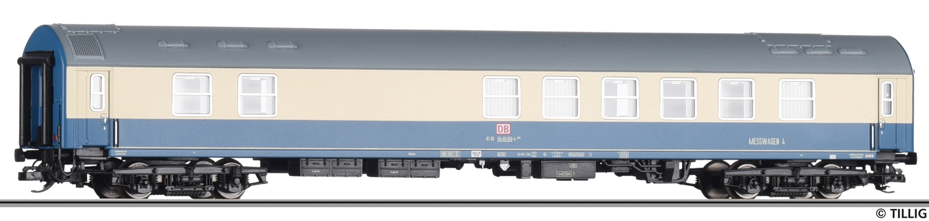 | měřící vůz modrý-slonová kost s šedou střechou „Messwagen 4“ |