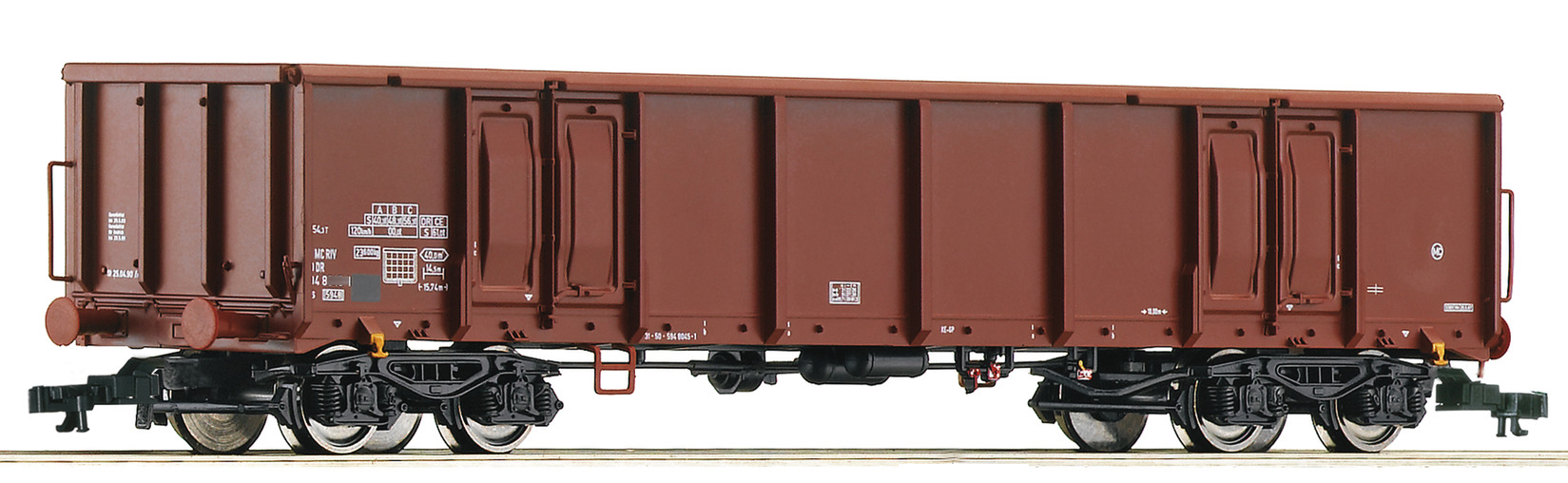 měřítko 1:120 - rozchod kolejí 12 mm kinematika krátkého spřáhla (KKK) podle normy NEM 358 131 mm - celková délka modelu přes nárazníky 4 - celkový počet náprav nebo rozložení náprav