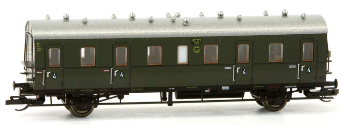 | osobní oddílový vůz zelený se stříbřitou střechou 4. tř. |