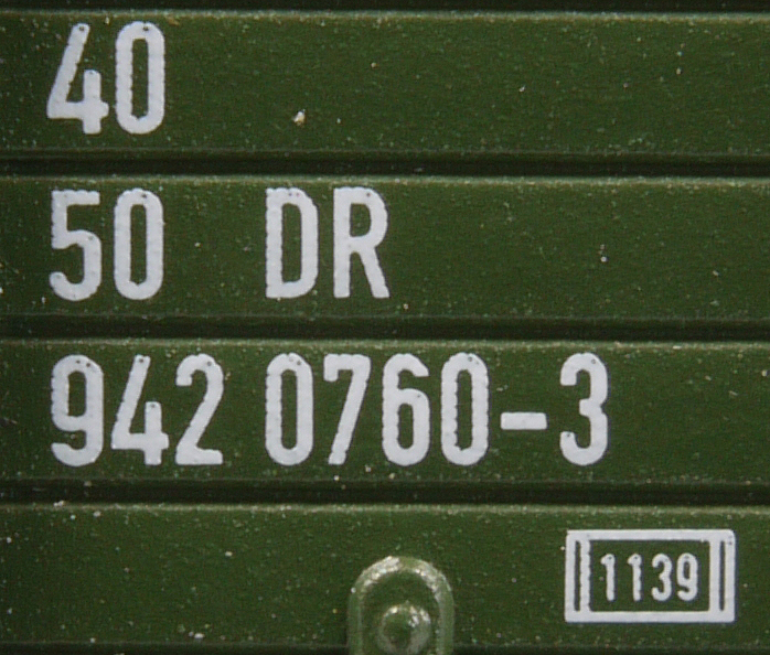 | • 40 50 942 0760-3 | → | DR - Deutsche Reichsbahn |