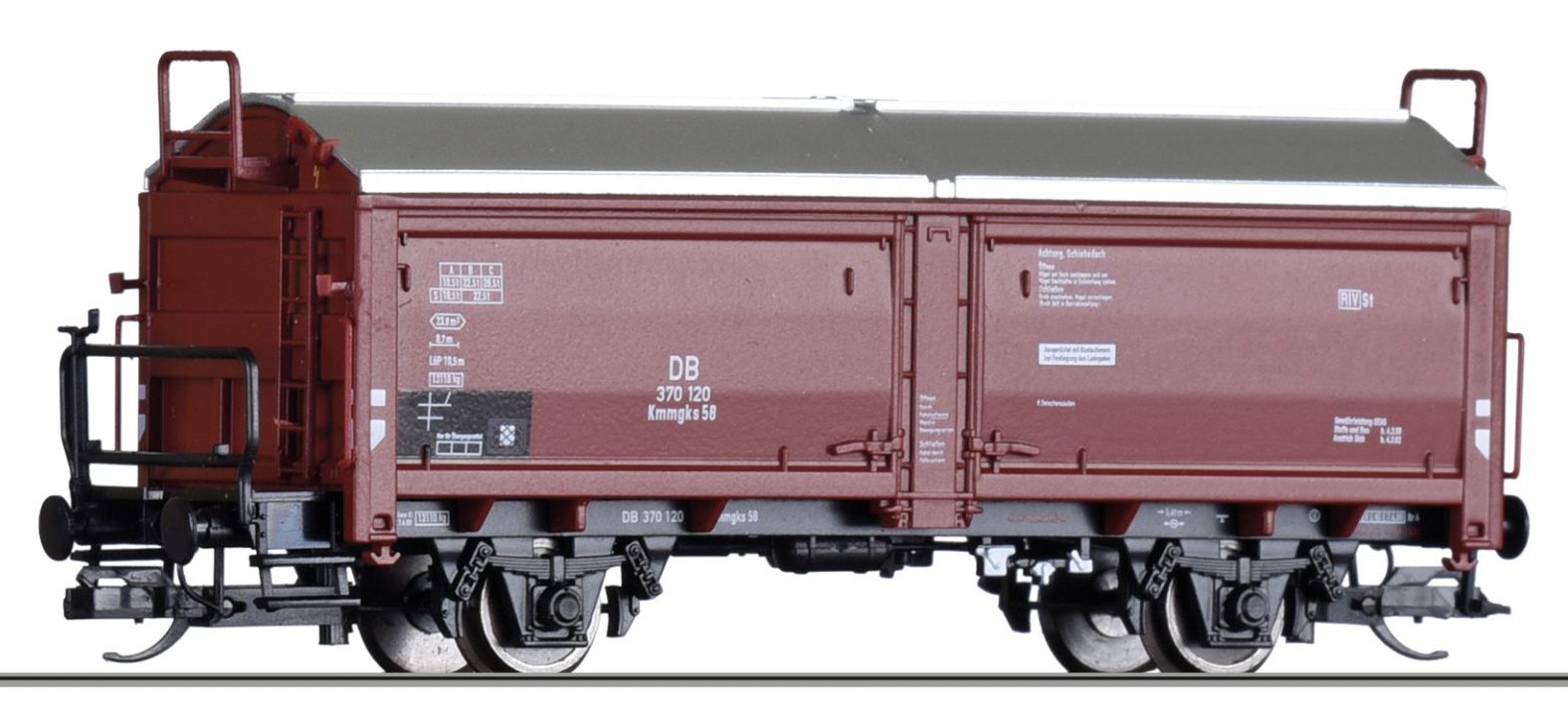| nákladní vůz s odsuvnou střechou červenohnědý, stříbrná střecha |