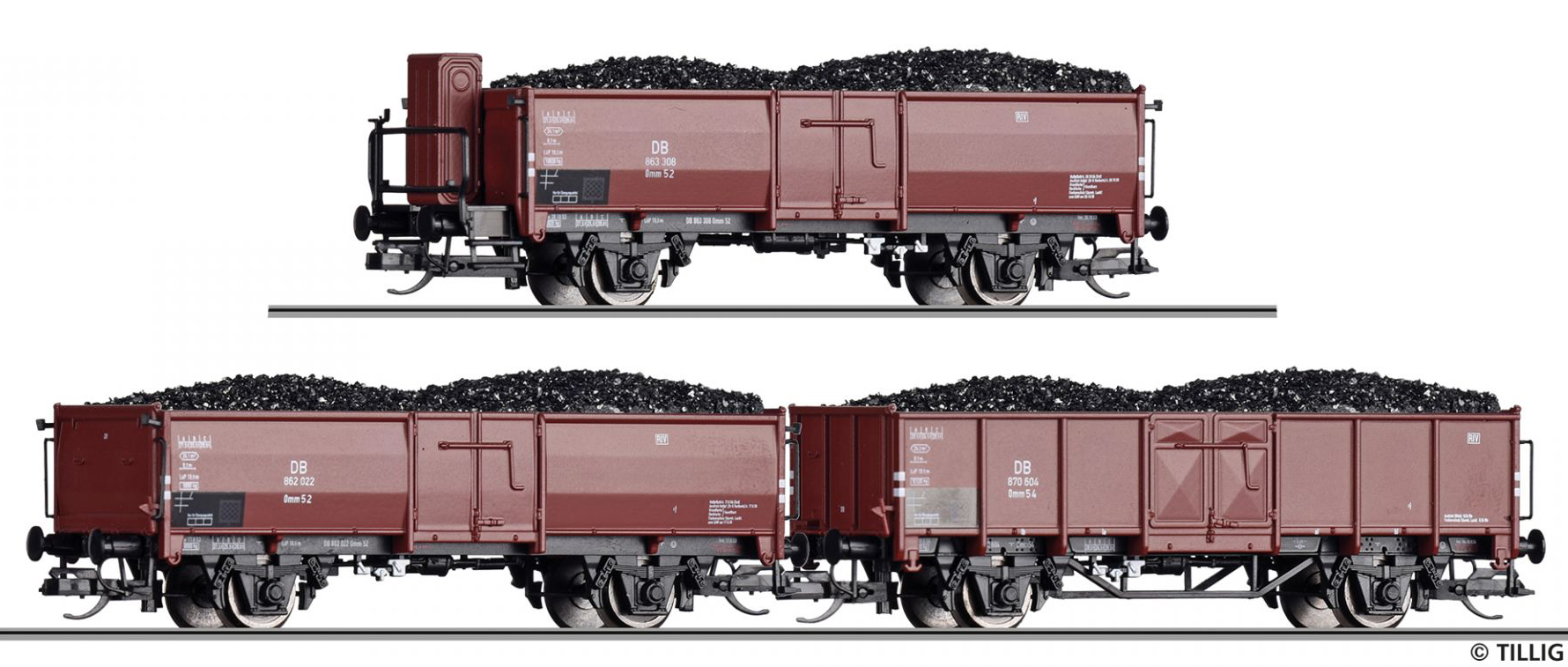Popis   set tří otevřených nákladních vozů s nákladem uhlí