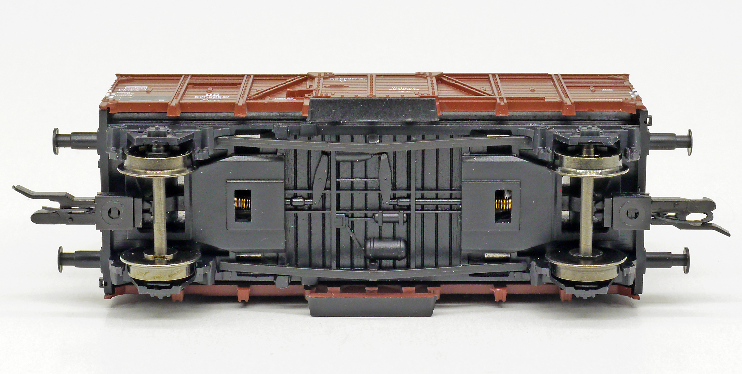 Popis   krytý nákladní vůz červenohnědý s tmavě šedou střechou