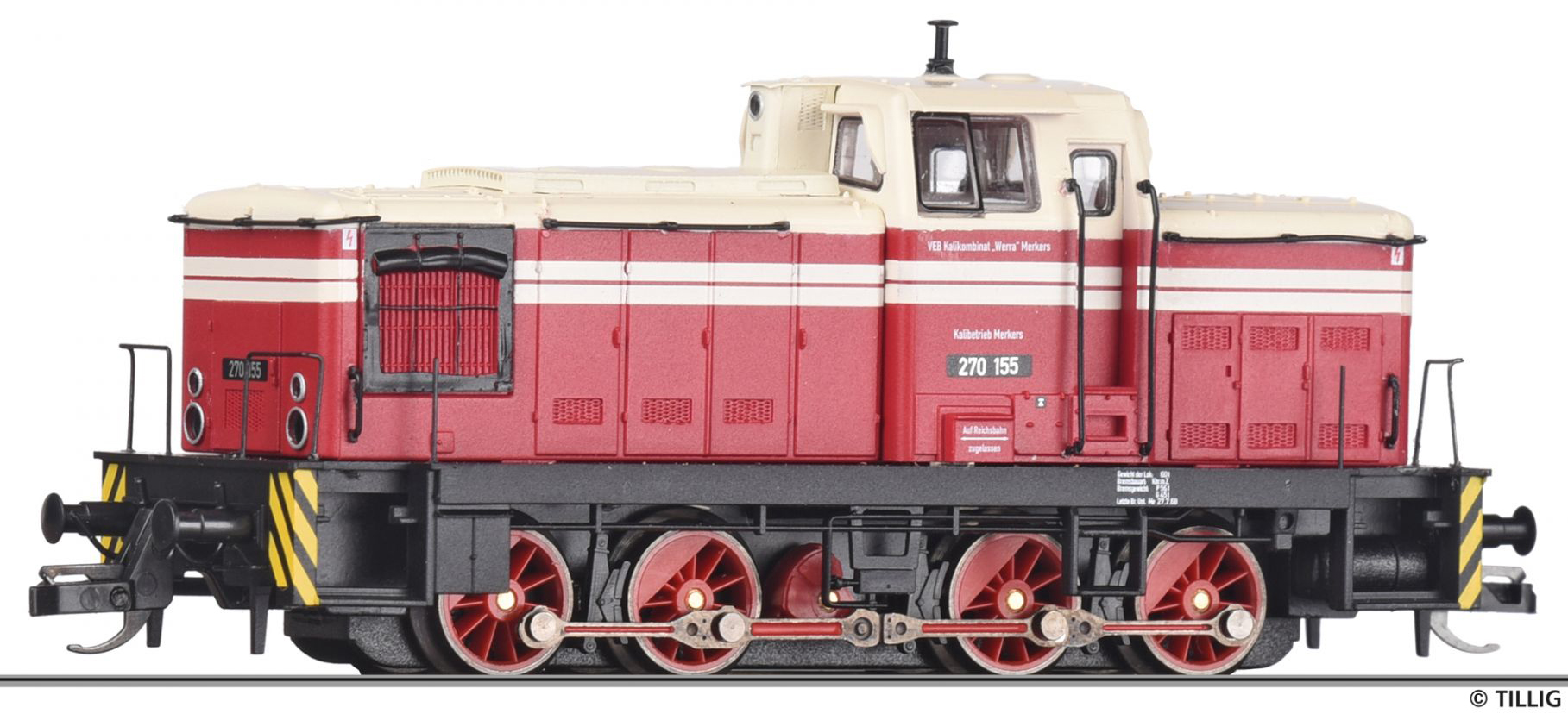 Popis   dieselová lokomotiva červená-slonová kost VEB Kalikombinat Werra
