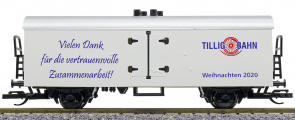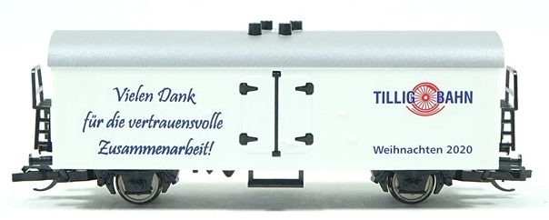 | chladící vůz bílý s šedou střechou a s reklamním potiskem „Weinachten 2020“ |