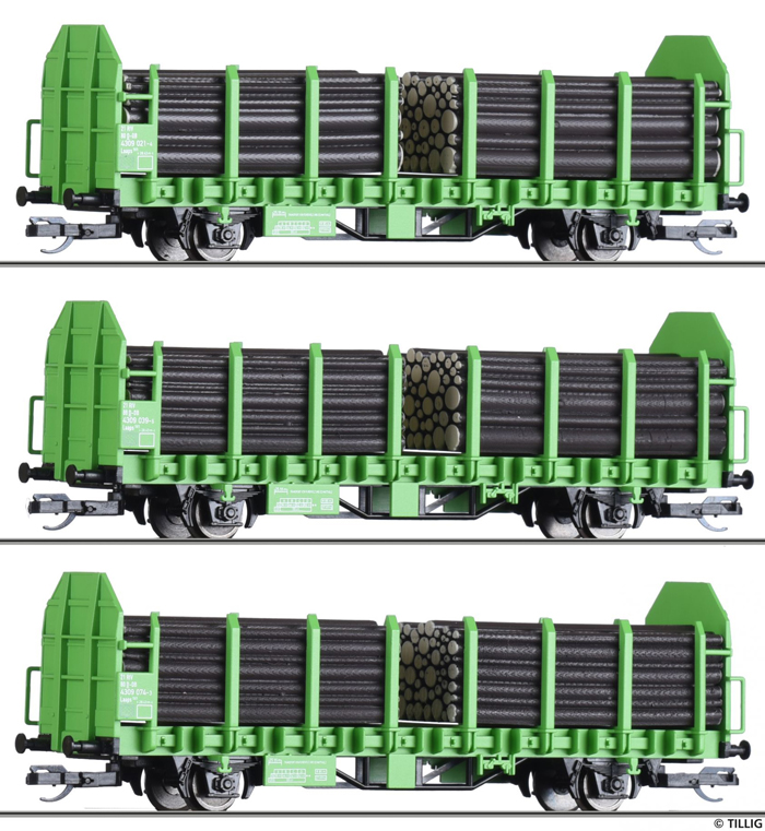 | set 3x4 nákladních vozů ložených kulatinou, display set „Rungenwagen START“ |
