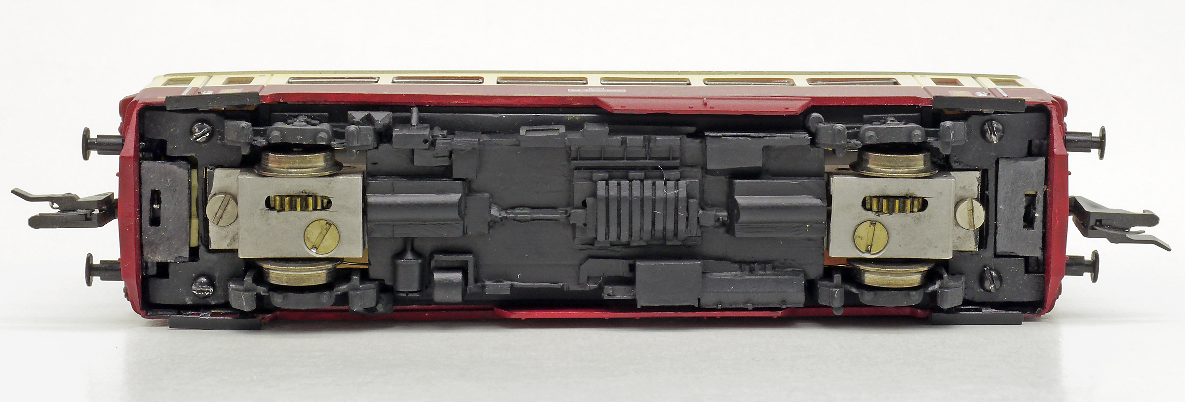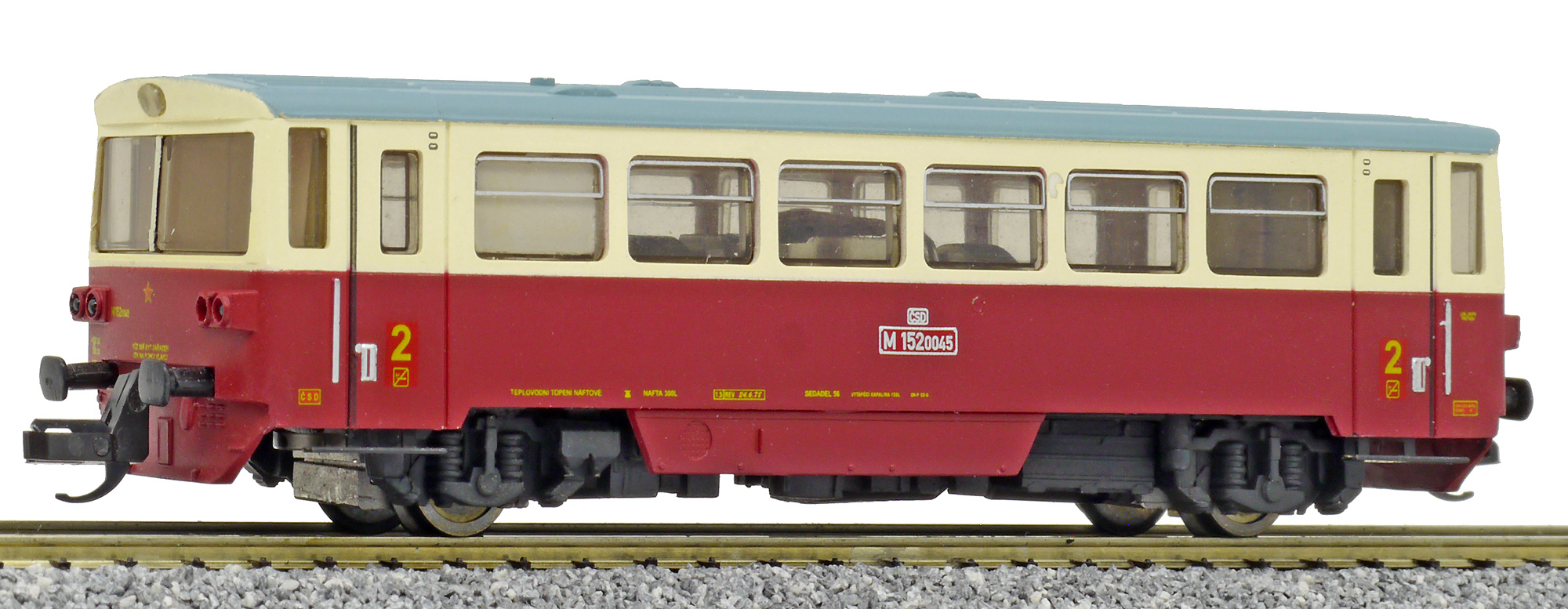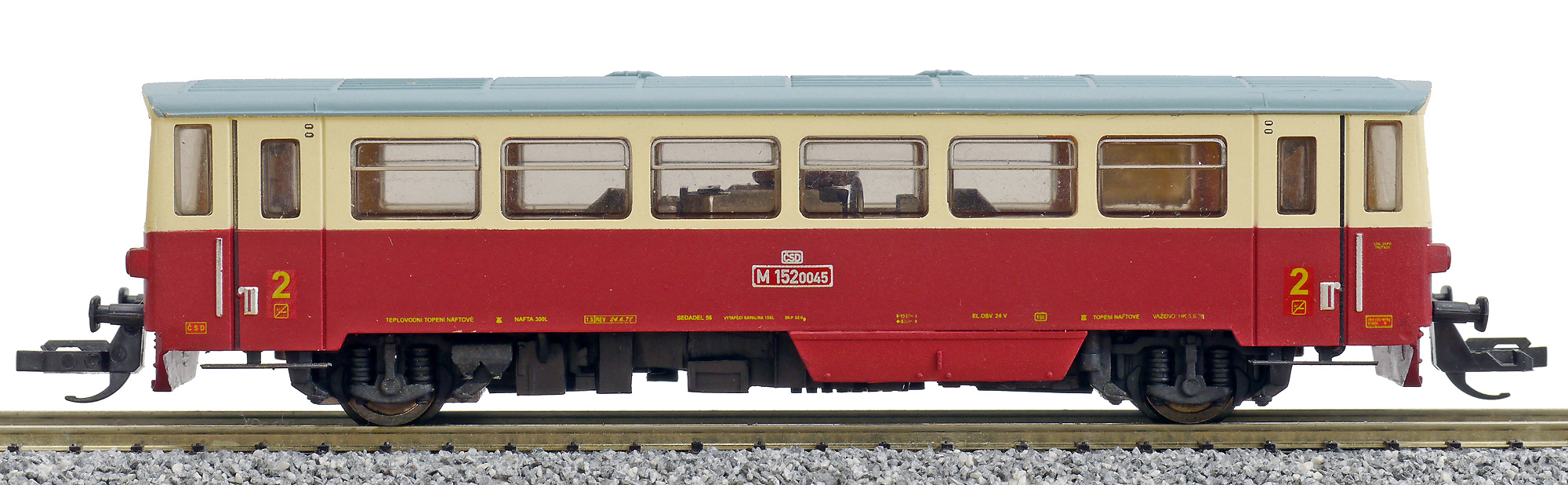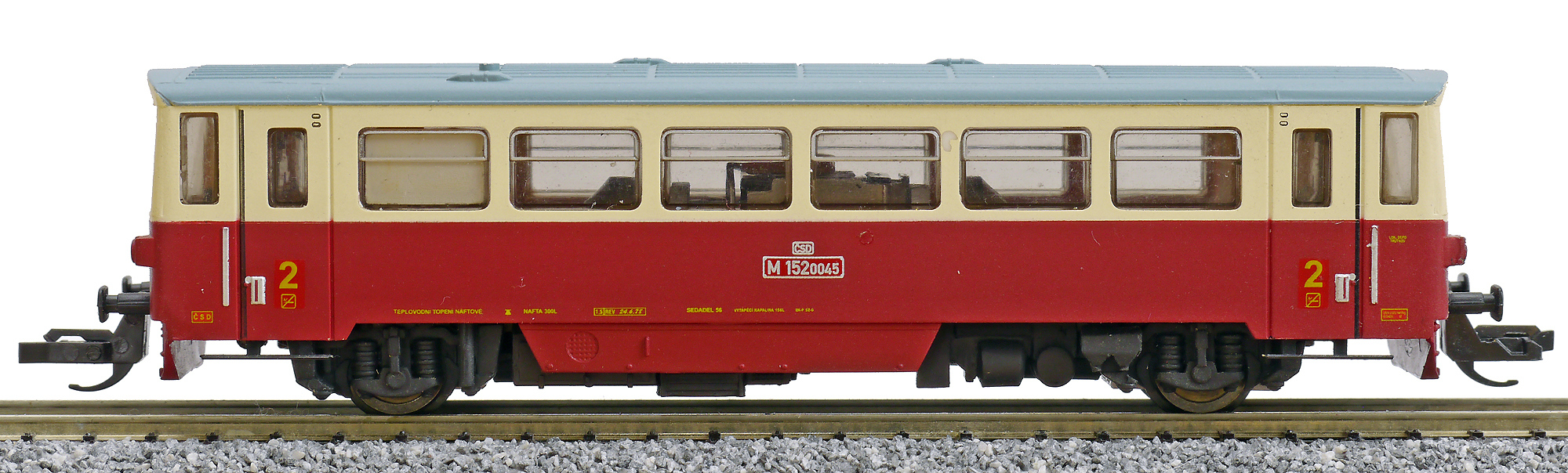 | motorový vůz červený-slonová kost s šedou střechou |