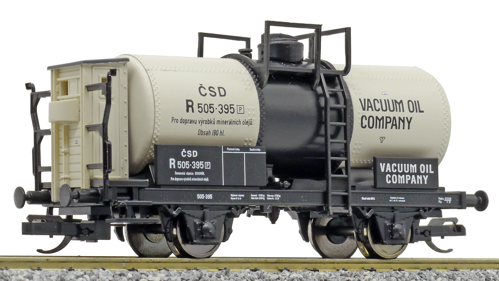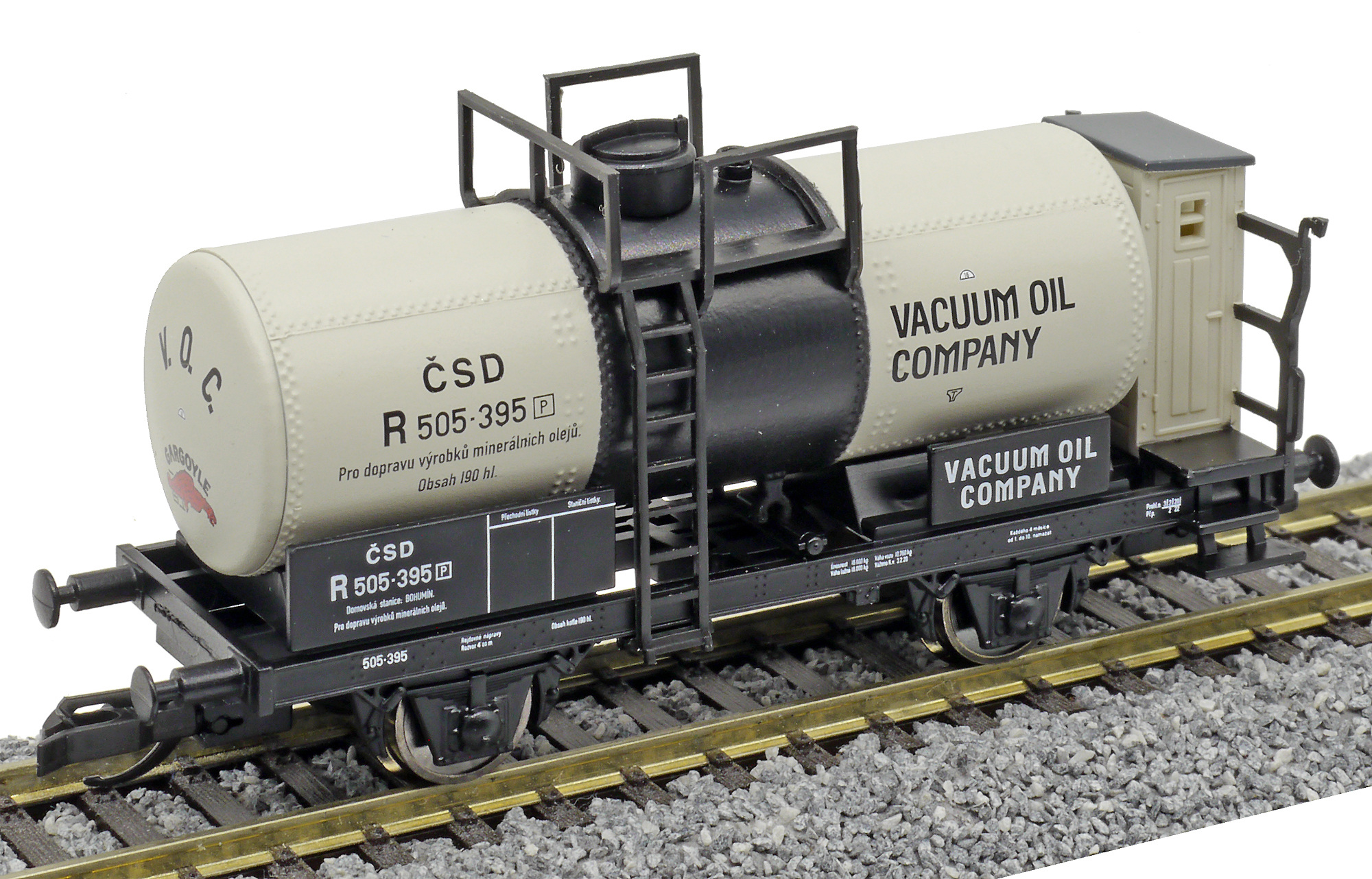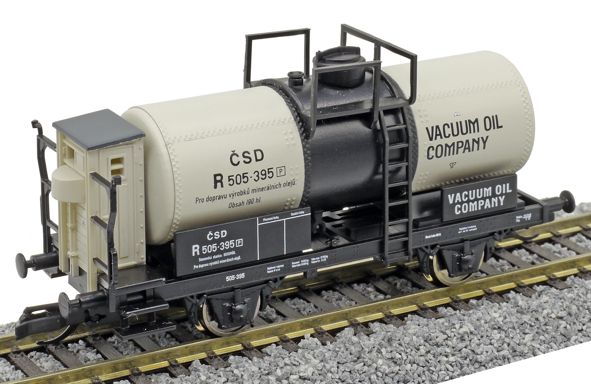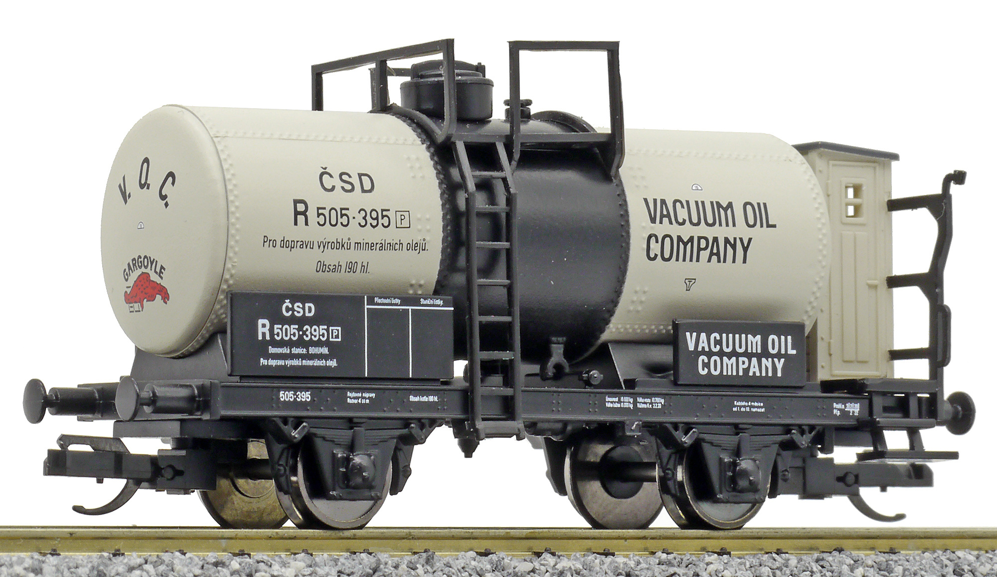 Popis   kotlový vůz šedý s brzdařskou budkou „VACUUM OIL COMPANY“