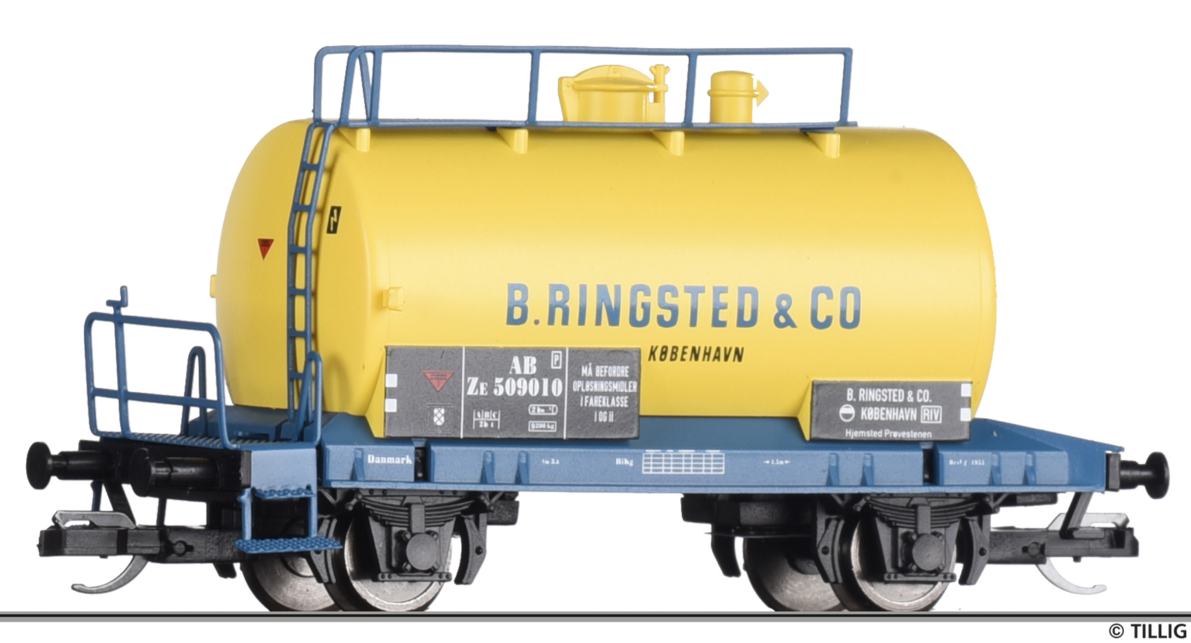 kotlový vůz žlutý „ZE B. Ringsted & Co. Kobenhavn“
