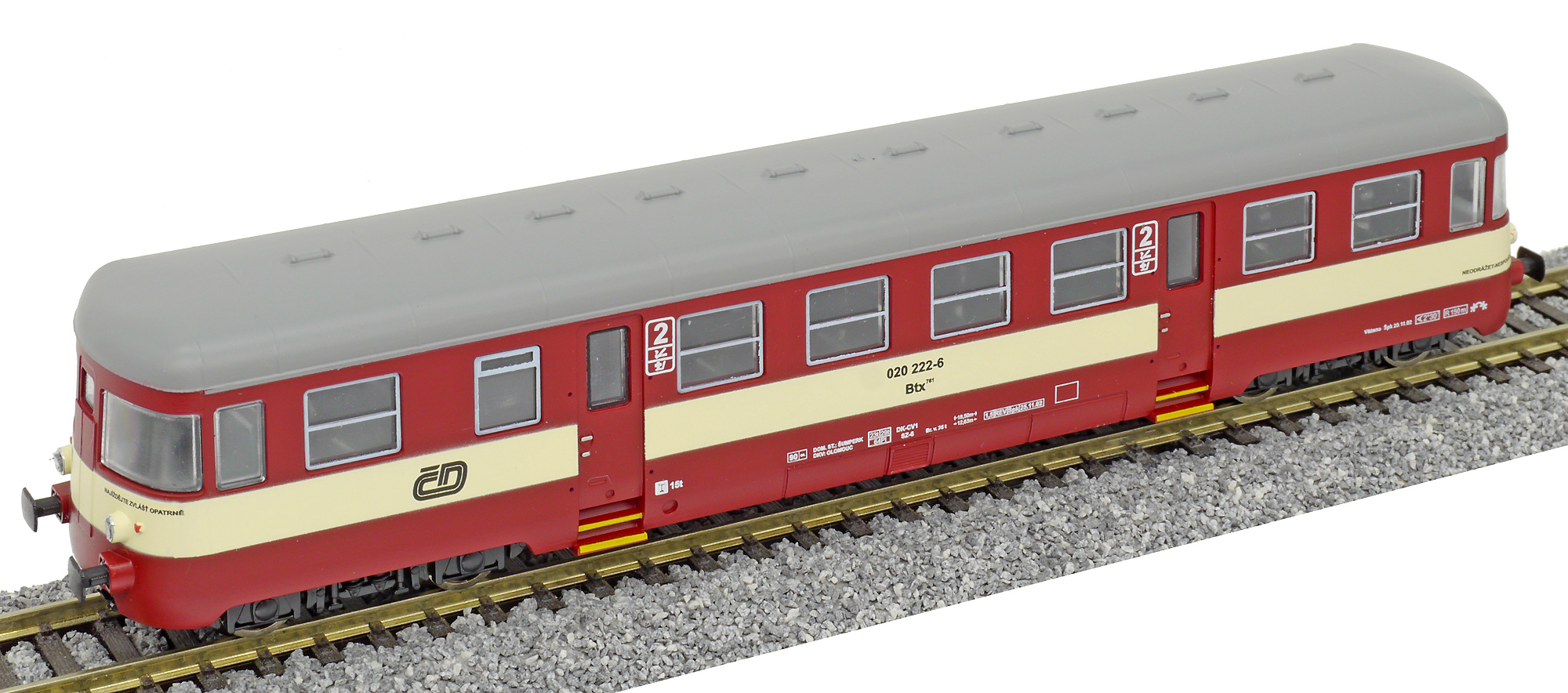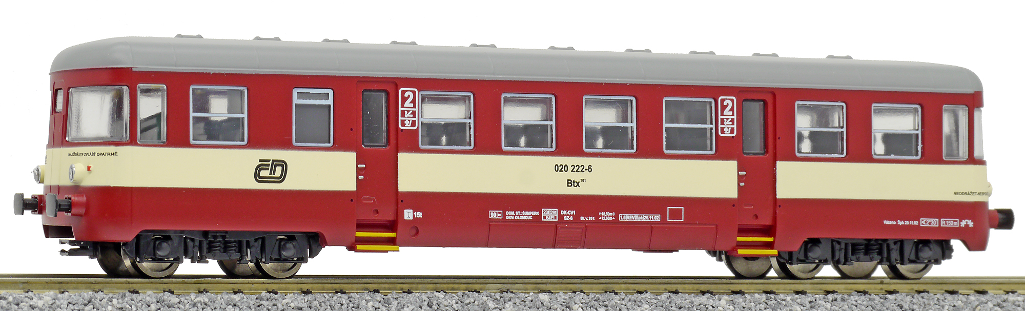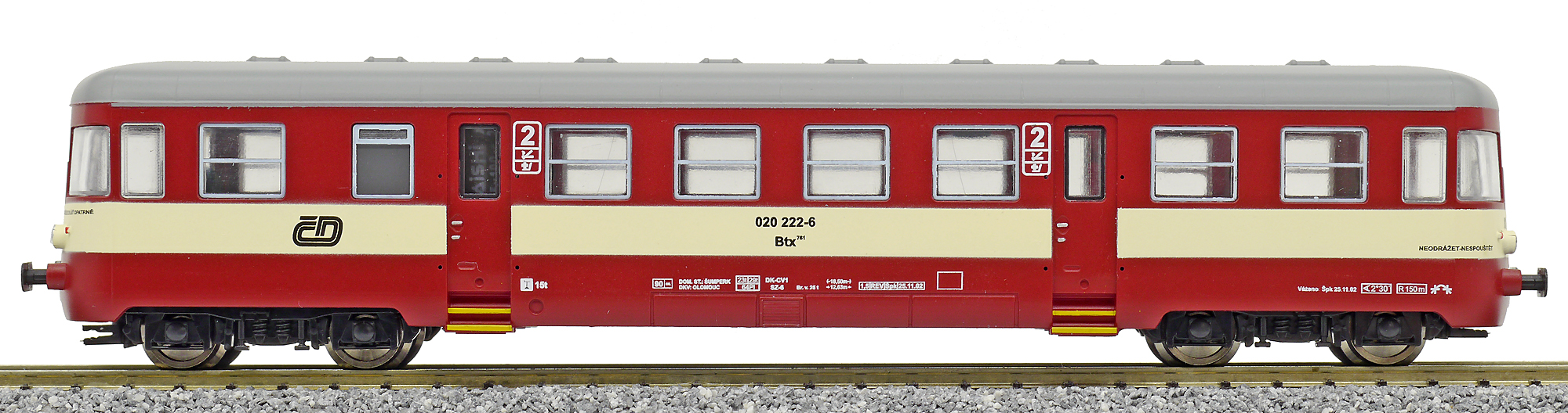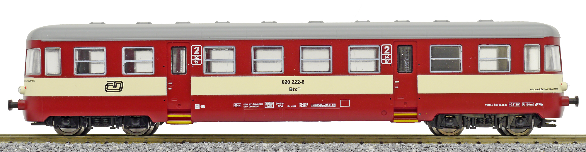 Popis   osobní vůz červený-slonová kost s šedou střechou 2. tř.