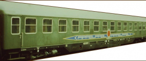 | lůžkový vůz tmavě zelený s potiskem „Apfelpfeil“ |