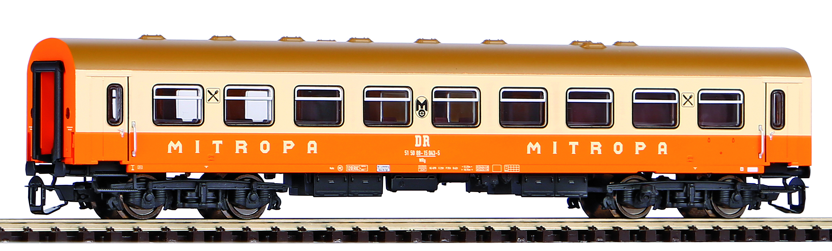 | jídelní vůz oranžový-slonová kost s šedou střechou „MITROPA“ |