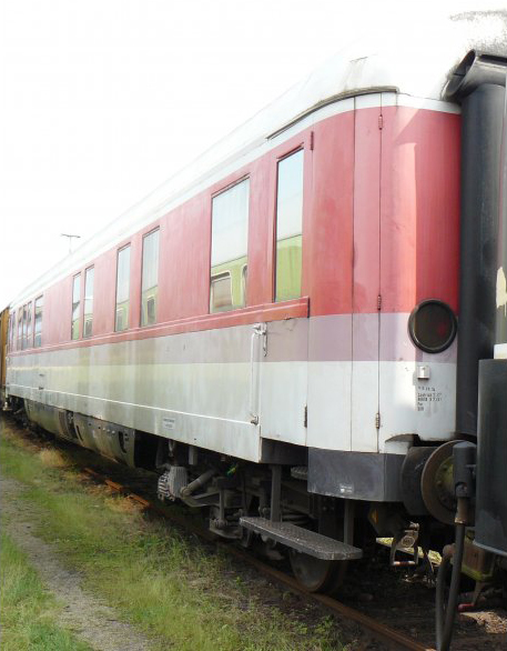 | jídelní vůz v původním barevném schematu IC, orientální červená-světle šedá |