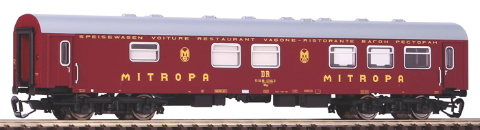 rekonstruovaný jídelní vůz tmavě červený s šedou střechou „Mitropa“