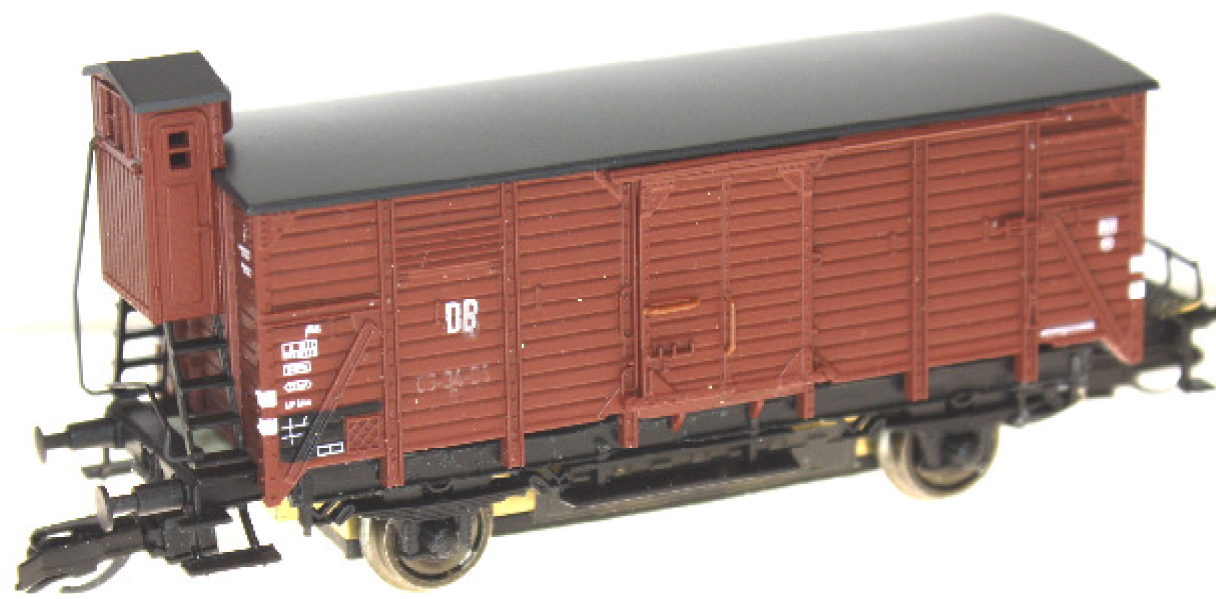 | krytý nákladní vůz červenohnědý s brzdařskou budkou |