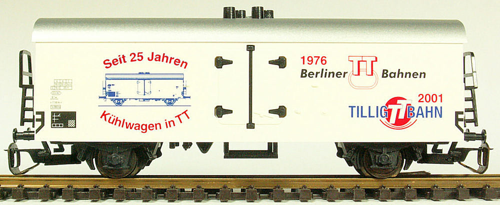 Popis   nákladní chladící vůz bílý se stříbřitou střechou střechou „25 Jahre Kühlwagen in TT“