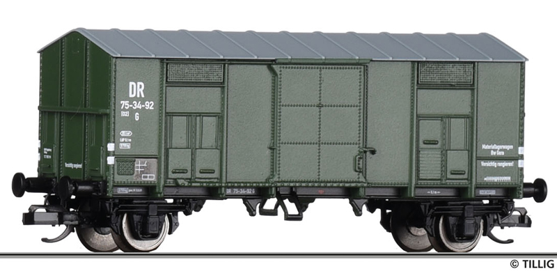 | krytý nákladní vůz zelený s šedou střechou do pracovního vlaku |