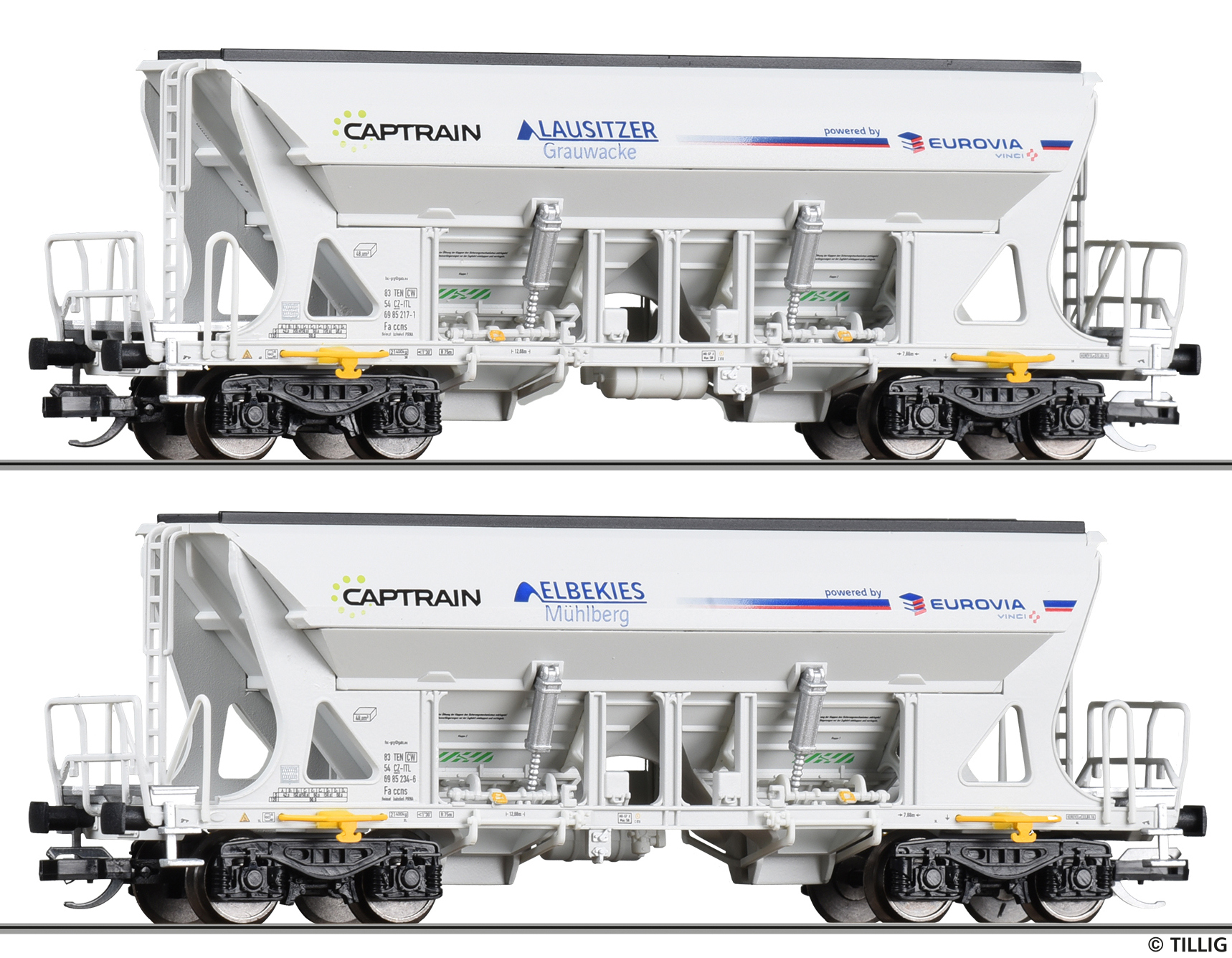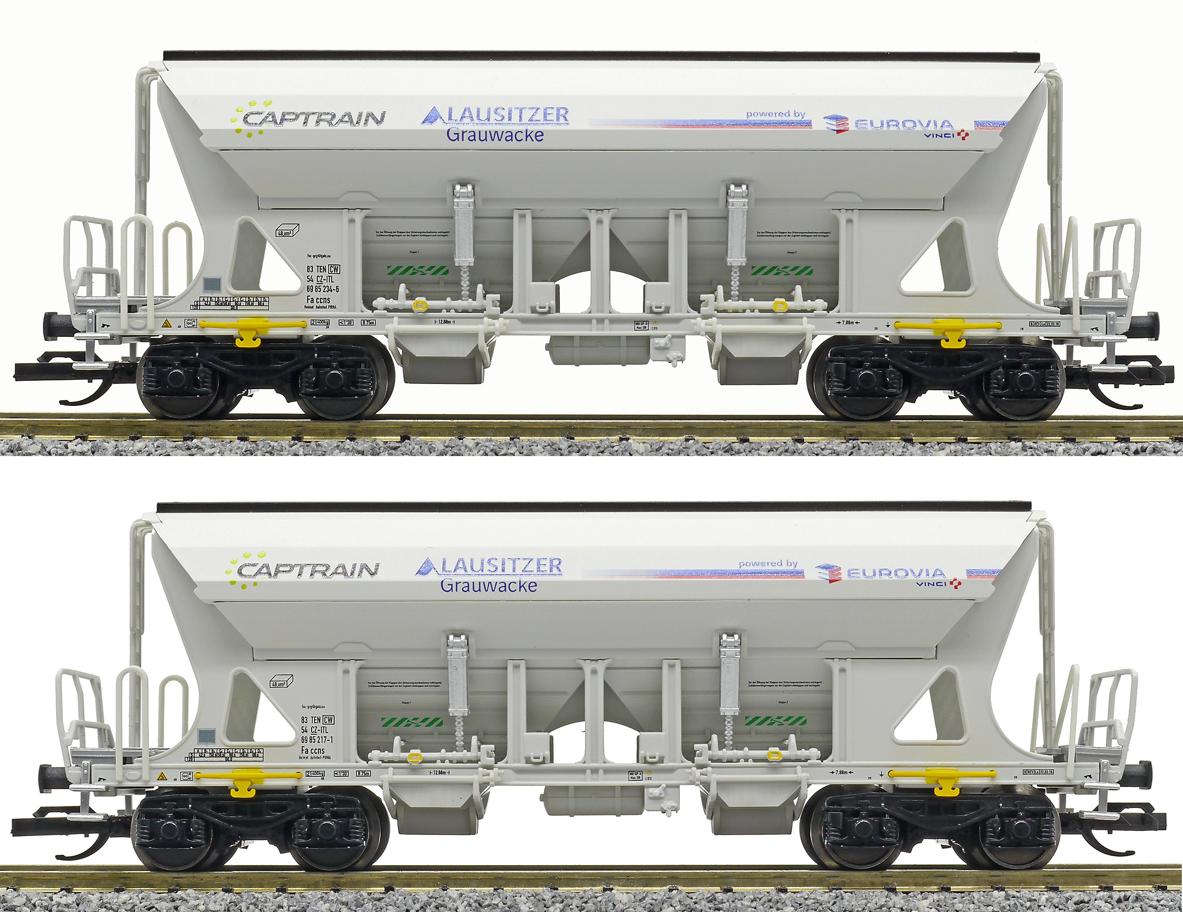 | set dvou nákladních samovýsypných vozů s potiskem „Captrain/Eurovia“ |