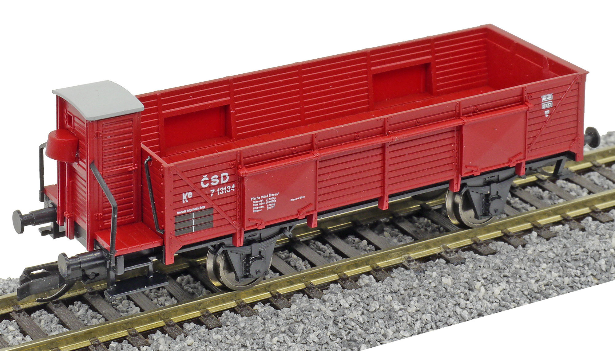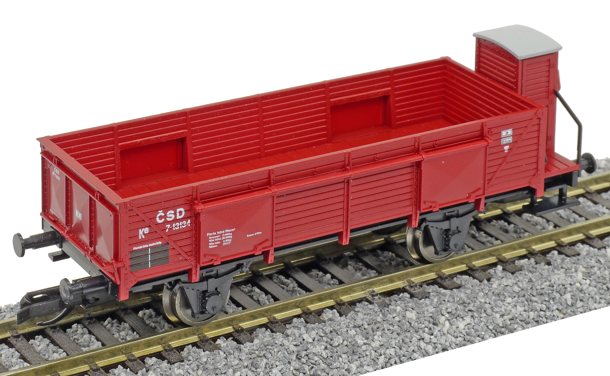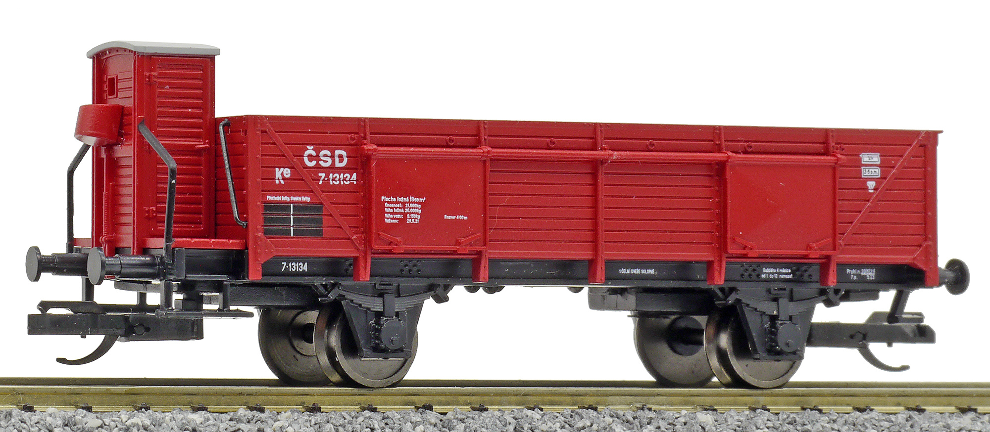 otevřený nákladní vůz červenohnědý s brzdařskou budkou