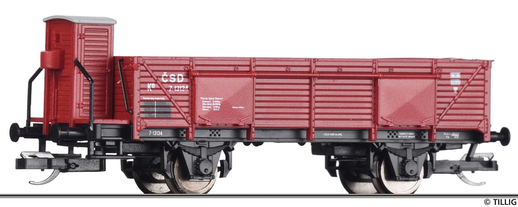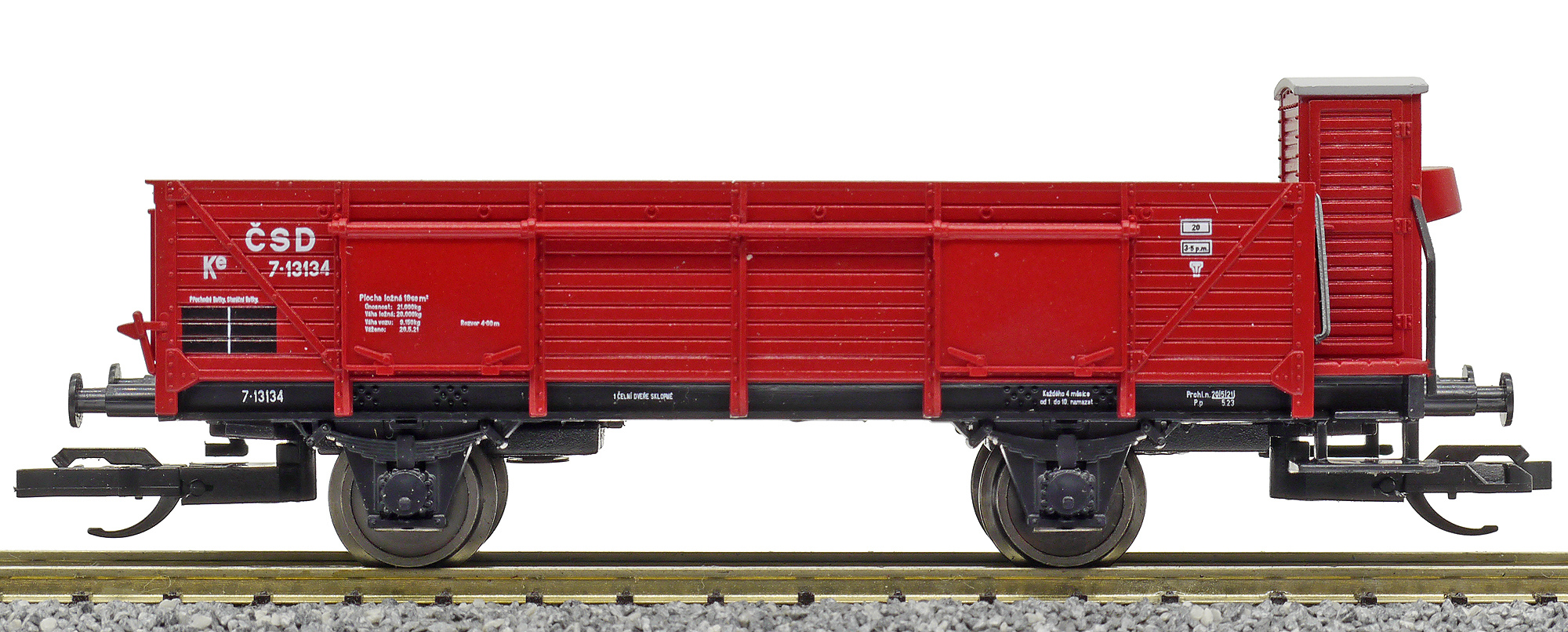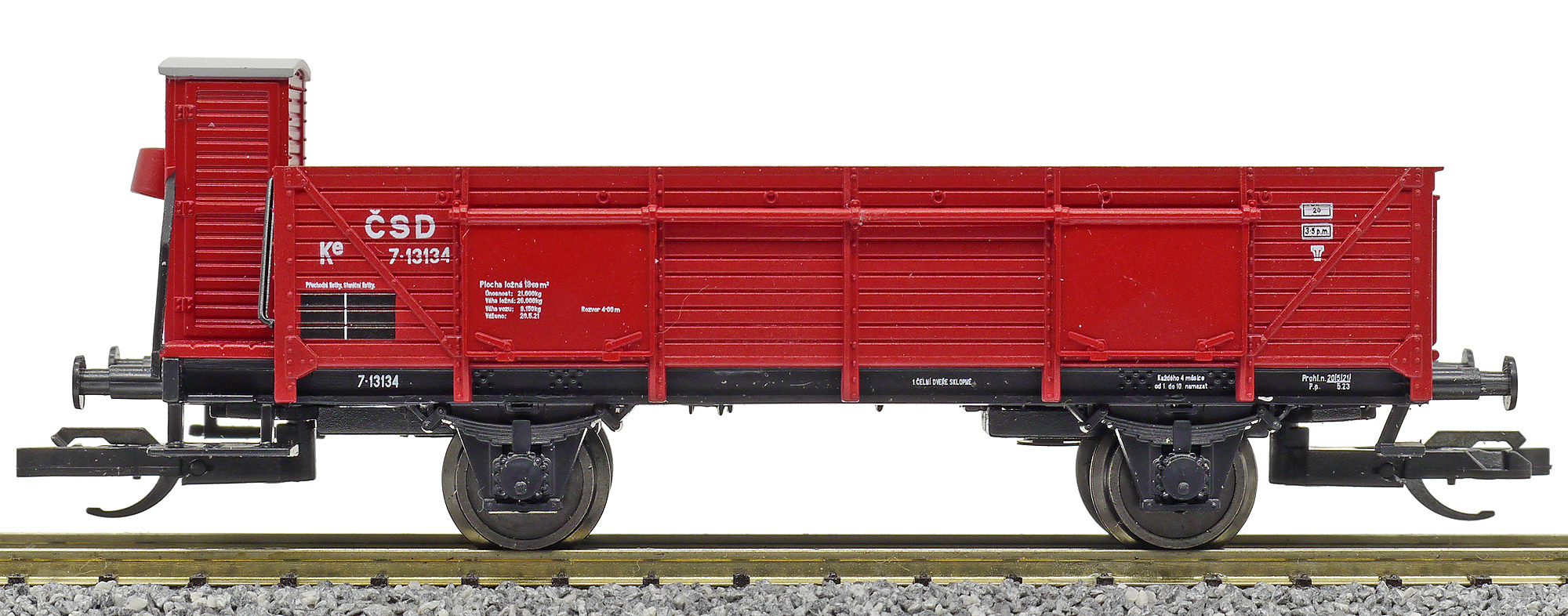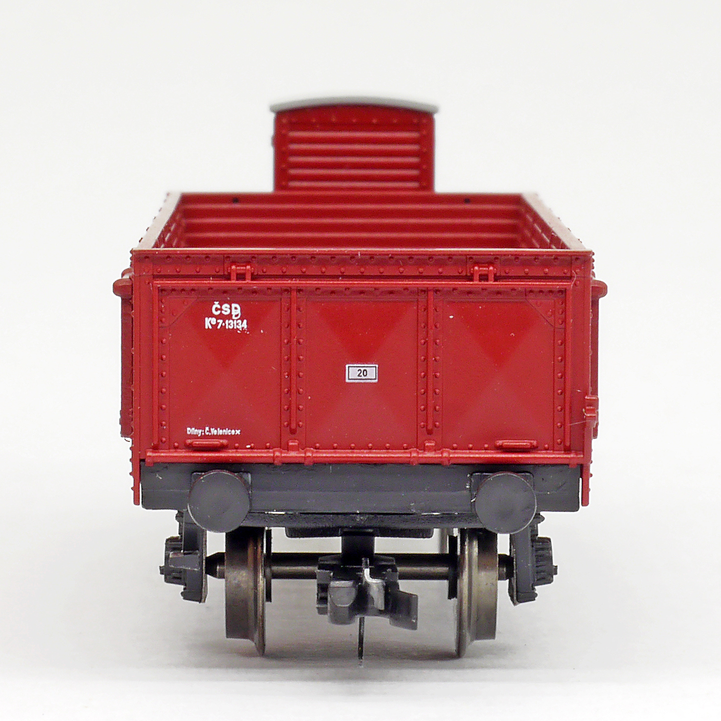 otevřený nákladní vůz červenohnědý s brzdařskou budkou