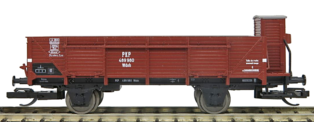 | otevřený nákladní vůz červenohnědý s brzdařskou budkou |