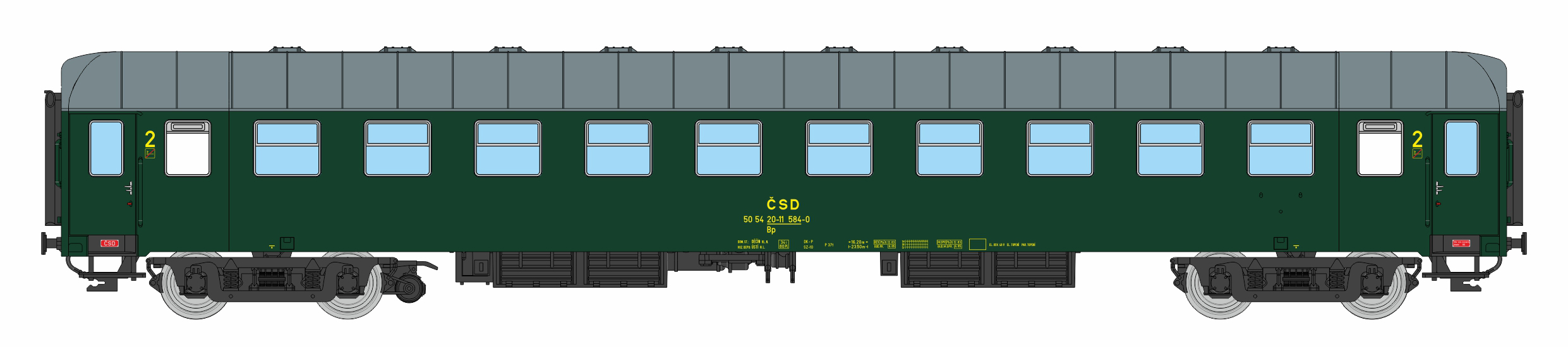 | • 50 54 20-11 584-0 | → | vůz druhé třídy 10 oddílů |