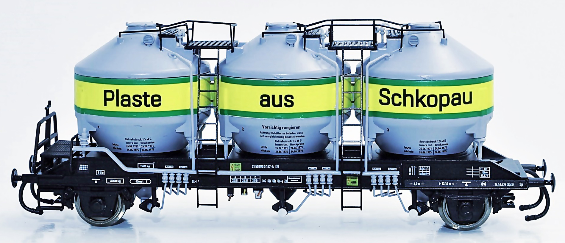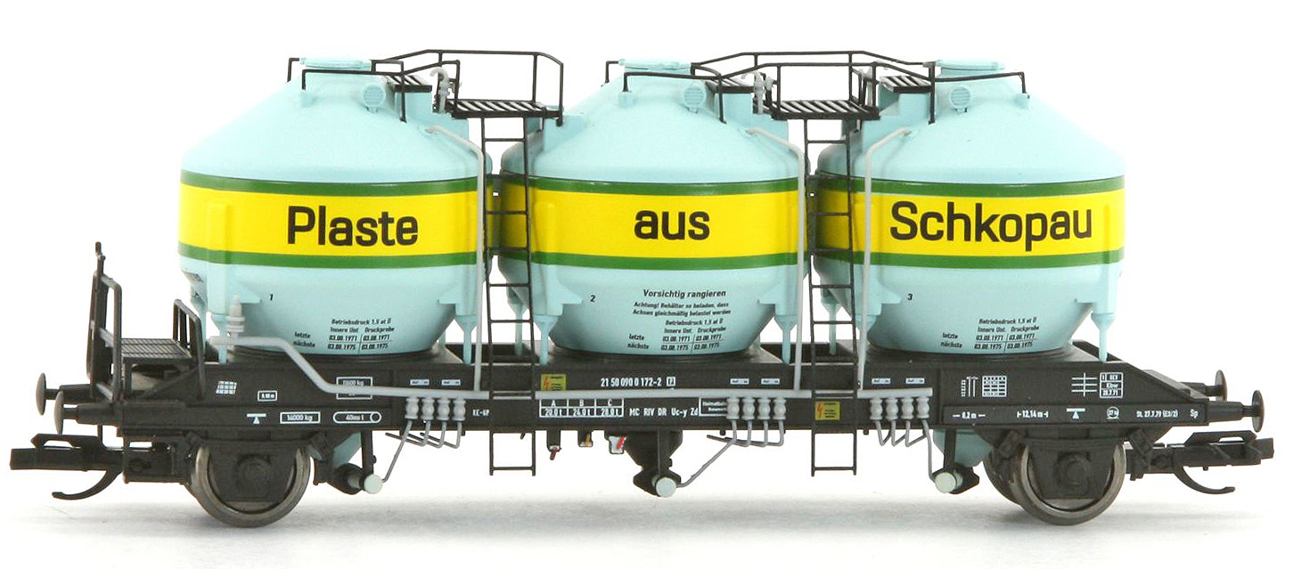 | nákladní samovýsypný vůz na přepravu plastových granulí „Plaste aus Schkopau“ |