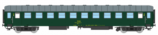 | osobní vůz zelený s šedou střechou 2. tř., Brno |