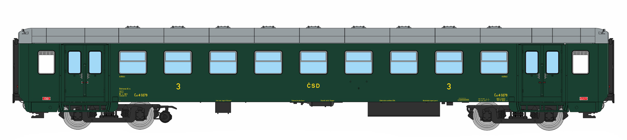 osobní vůz zelený s šedou střechou 3. tř., Ostrava