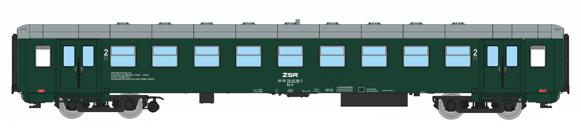 | • 60 56 20-02 119-2 | → | vůz druhé třídy 10 oddílů |