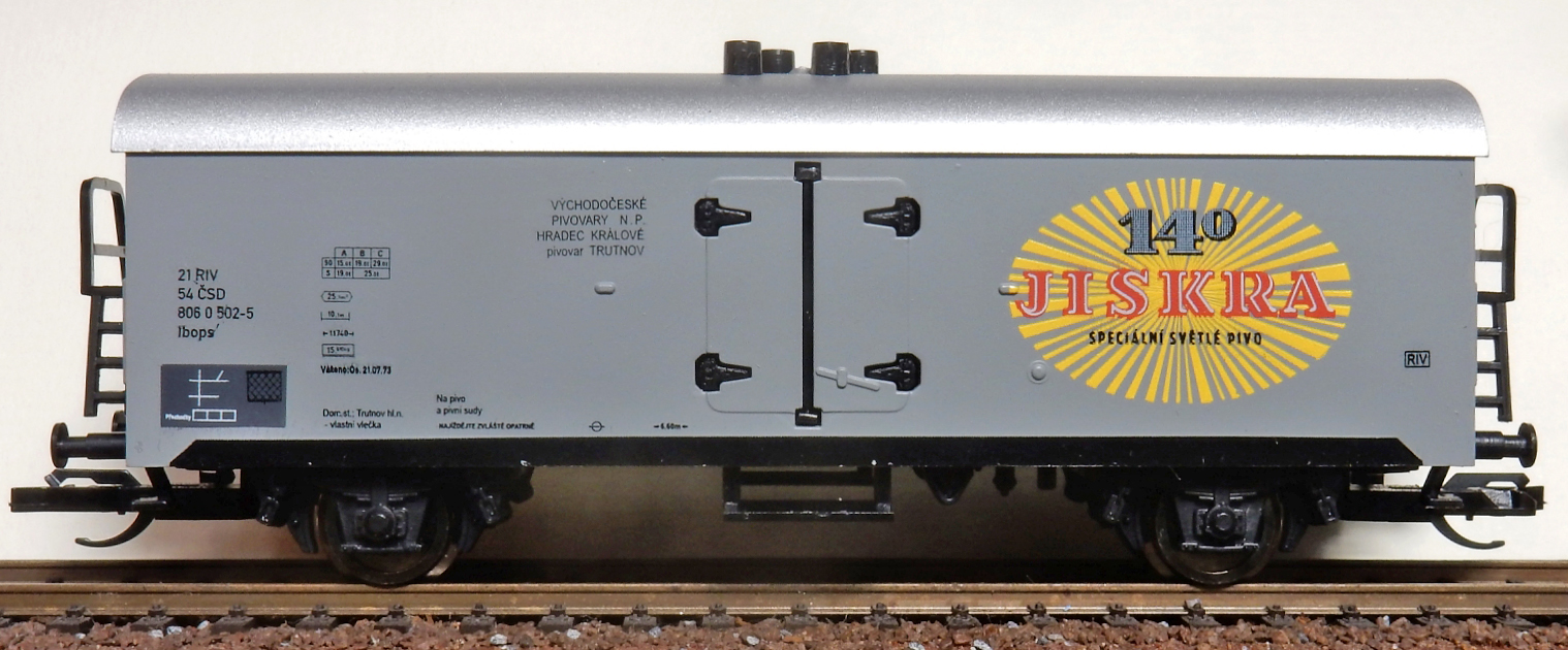 | chladící vůz šedý se stříbrnou střechou „Jiskra 14°“ |