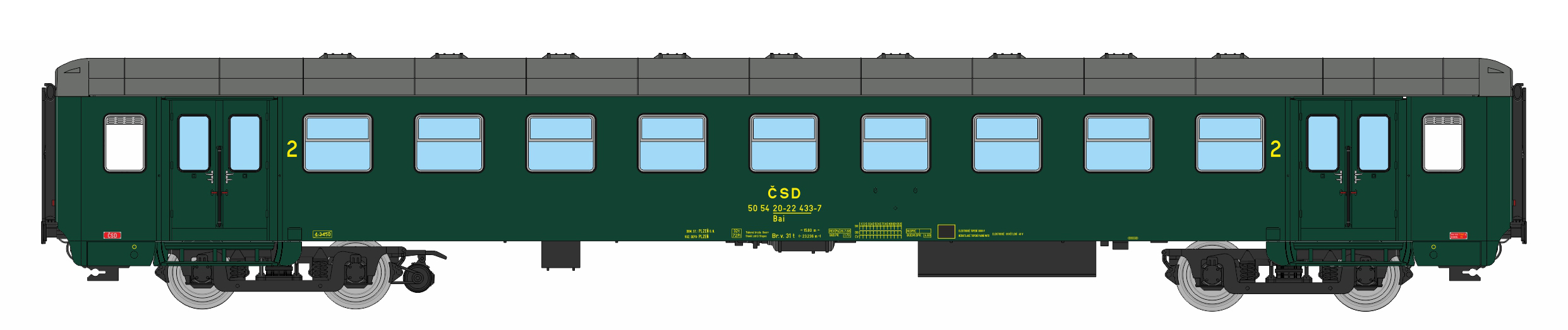 | • 50 54 20-22 433-7 | → | vůz druhé třídy 10 oddílů |