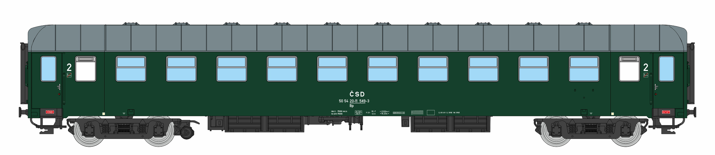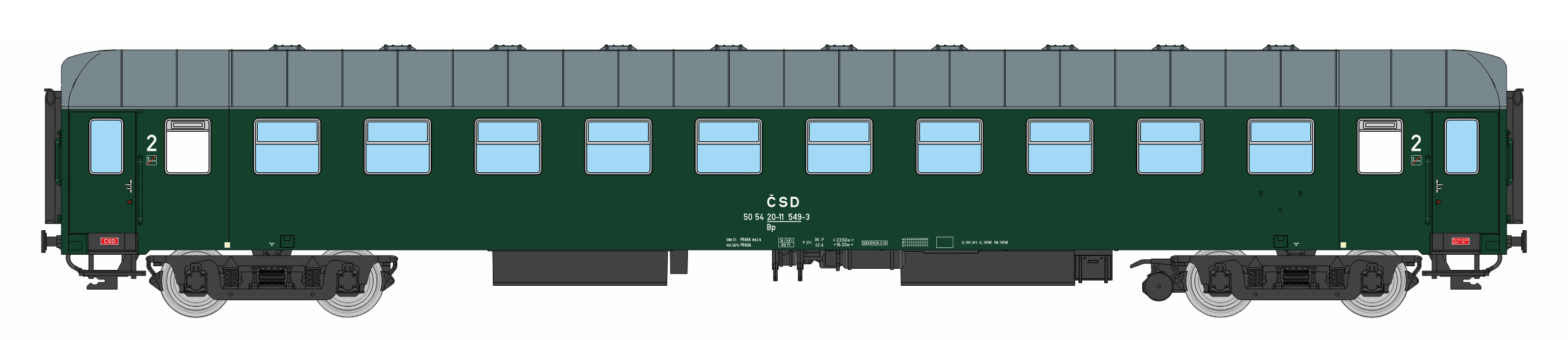 | • 50 54 20-11 549-3 | → | vůz druhé třídy 10 oddílů |