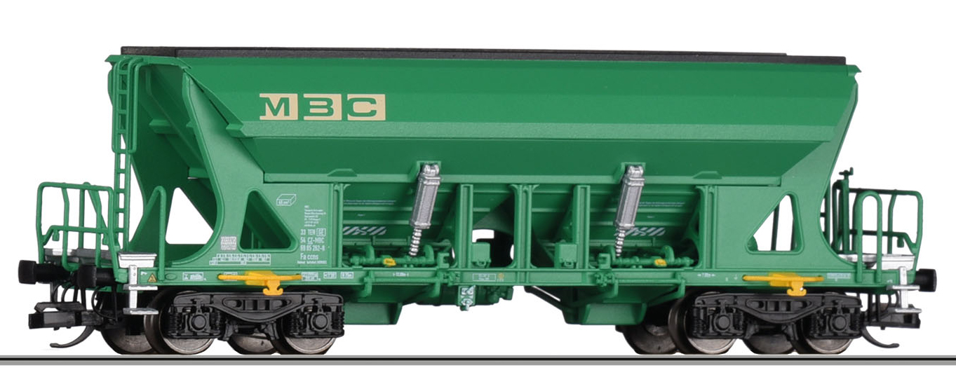 | nákladní samovýsypný vůz zelený s logem „MBC“ |