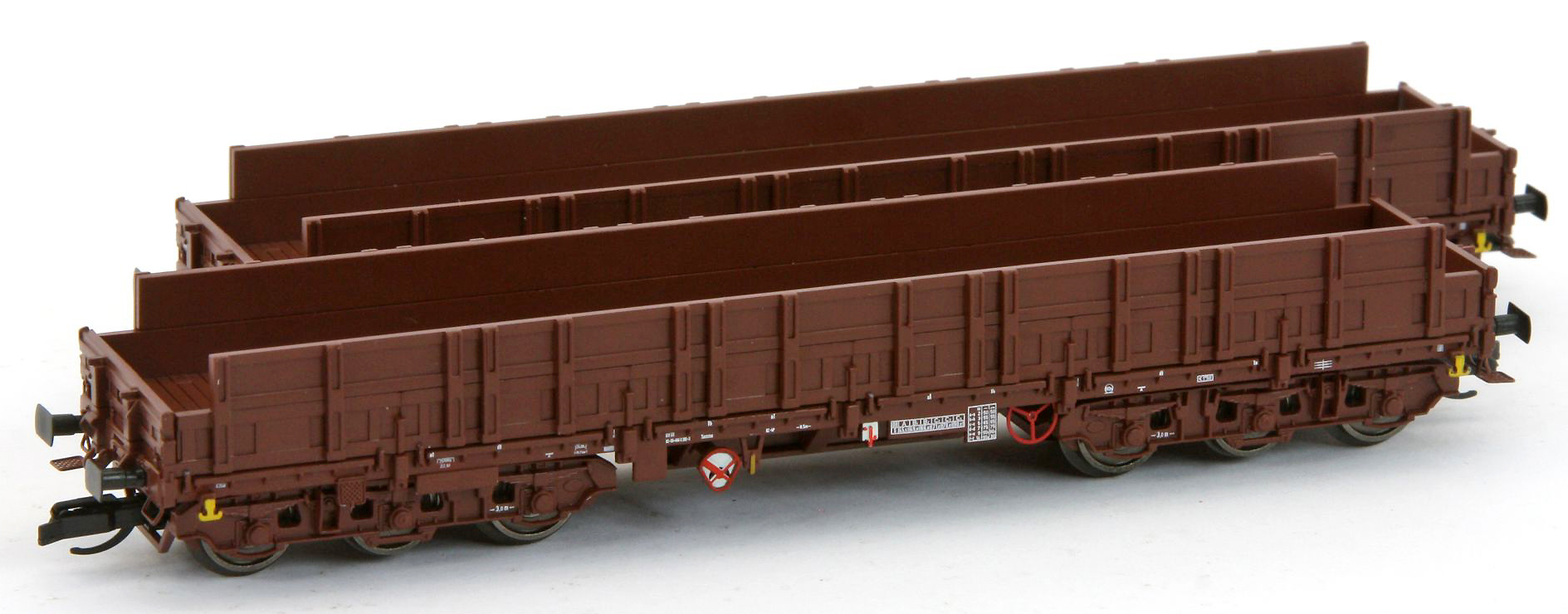 | set dvou plošinových nákladních vozů s vysokými bočními stěnami |