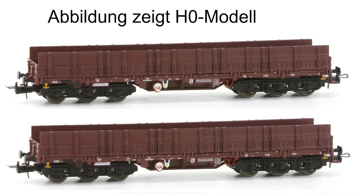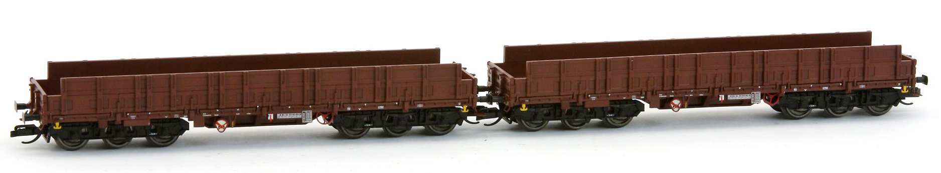 | set dvou otevřených nákladních vozů s vysokými bočnicemi |