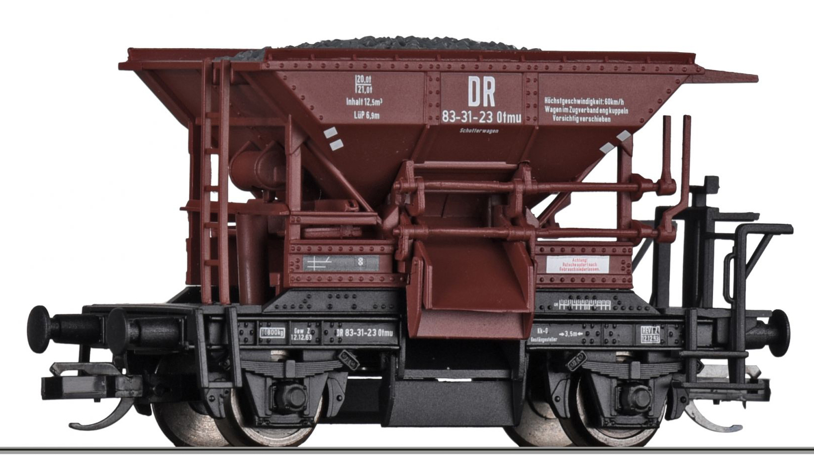 měřítko 1:120 - rozchod kolejí 12 mm kinematika krátkého spřáhla (KKK) podle normy NEM 358 12x58 mm - celková délka modelu přes nárazníky 12x2 - celkový počet náprav nebo rozložení náprav