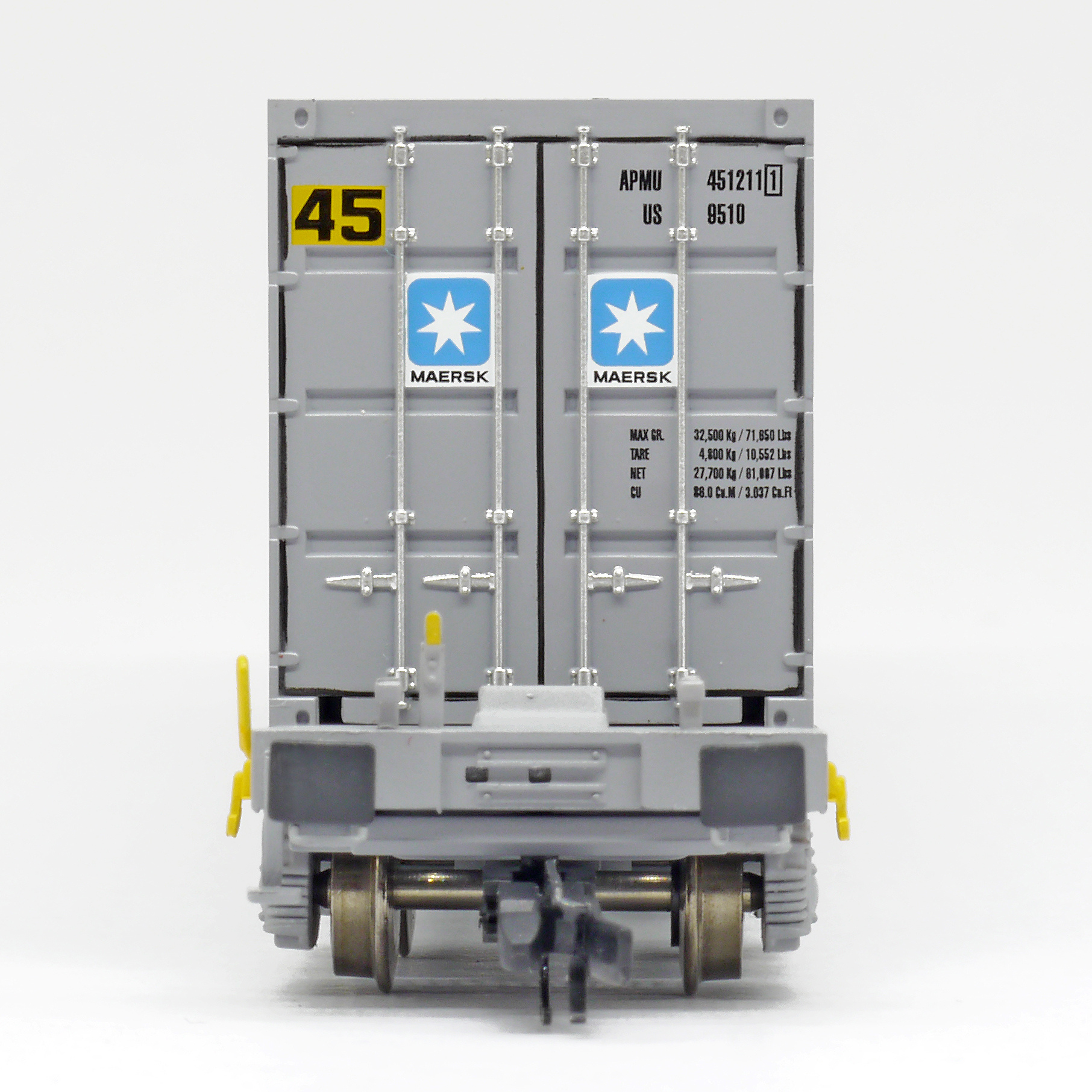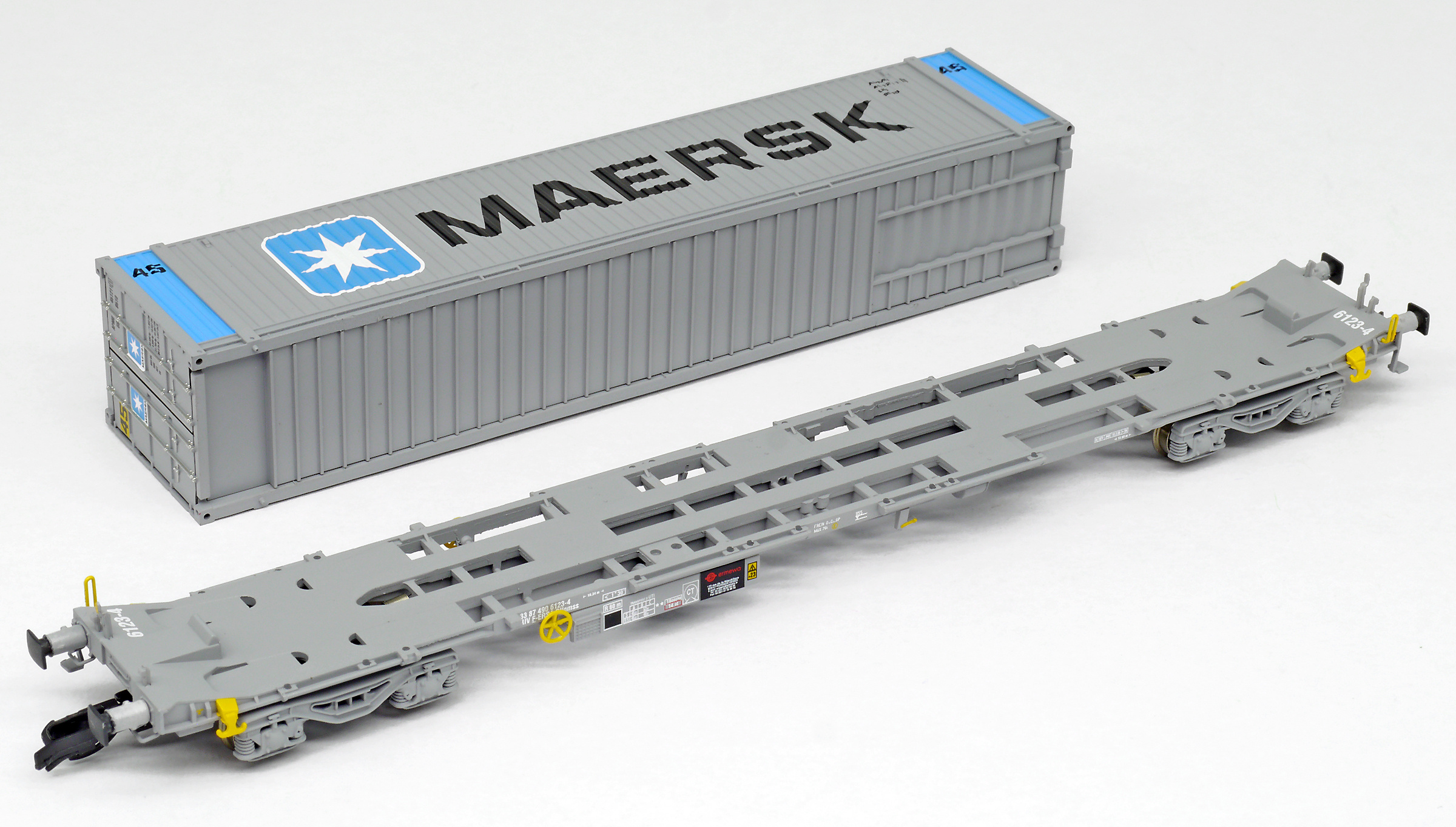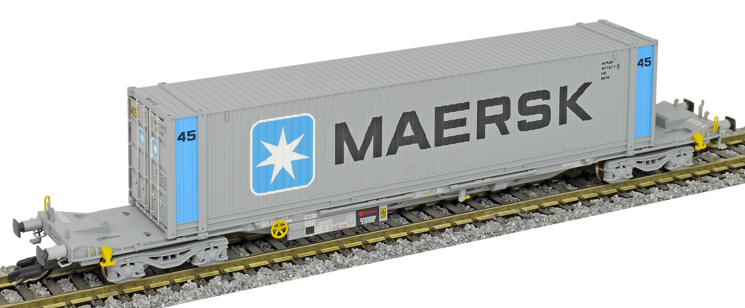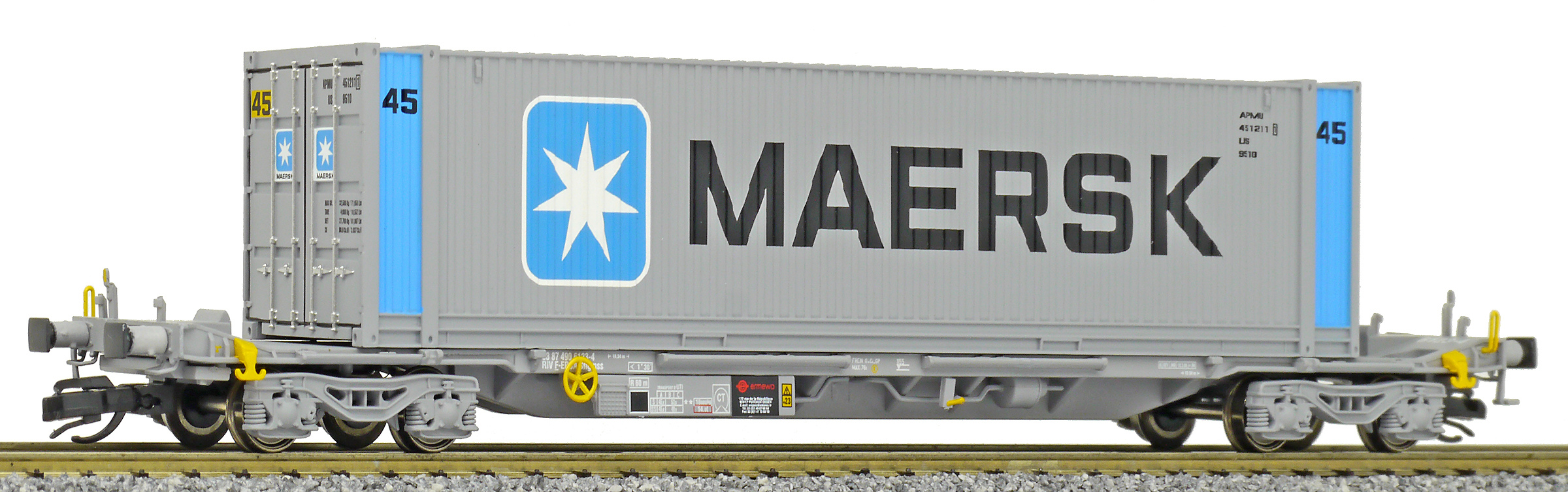 | kontejnerový vůz „IFA” šedý ložený 45' kontejnerem „Maersk” |