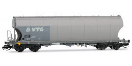 | nákladní samovýsypný vůz šedý s logem „VTG“ |