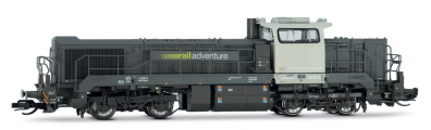 | dieselová lokomotiva tmavě šedé nátěru, světle šedá kabina |