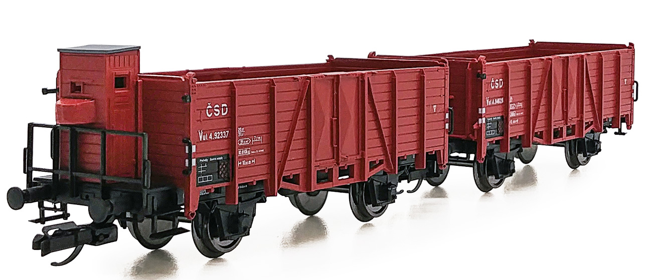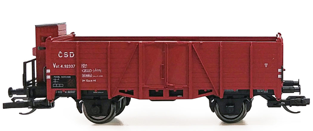 | otevřený nákladní vůz červenohnědý s brzdařskou budkou |