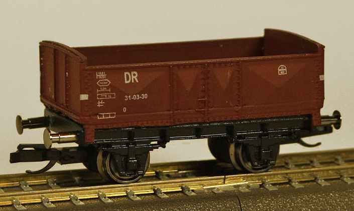 | otevřený nákladní vůz červenohnědý, černý pojezd |