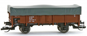 | otevřený nákladní vůz červenohnědý s plachtou |