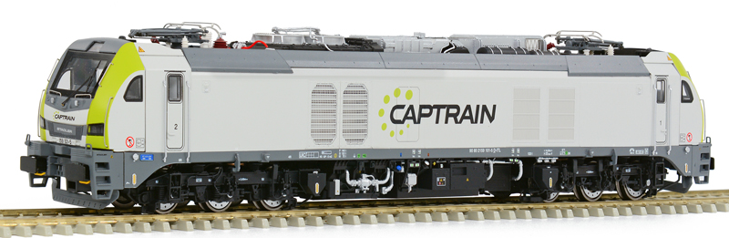 | Stadler EuroDual dual mode lokomotiva šedá s logem „Captrain“ |