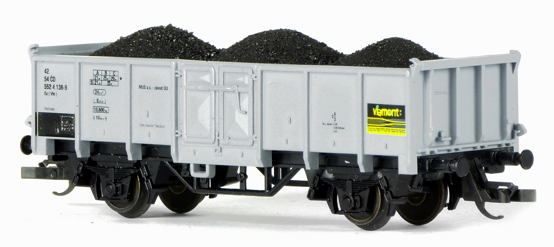 | otevřený nákladní vůz šedý ložený uhlím „Viamont“ |