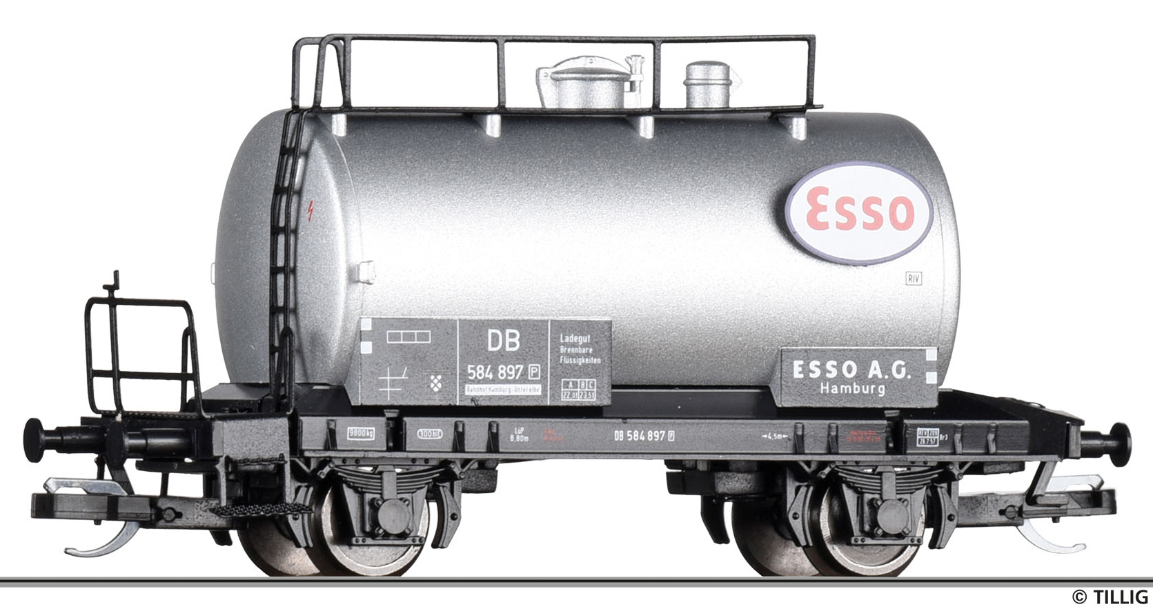 | kotlový vůz stříbrný s logem „Esso“ |
