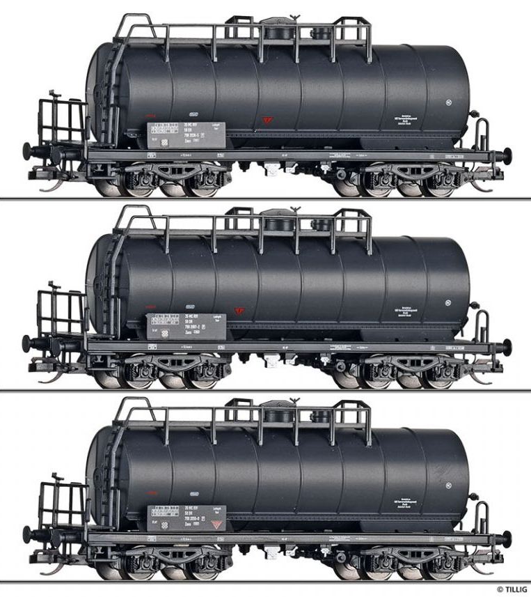 | set tří černých kotlových vozů „VEB Teerverarbeitungswerk Rositz“ |