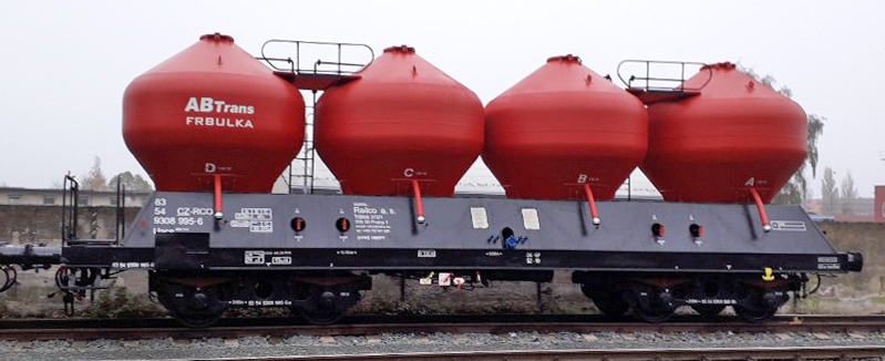 | nákladní samovýsypný vůz černý s červenými nádobami „ABTrans - FRBULKA“ |
