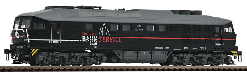 | dieselová lokomotiva v barevném schematu „Erfurter Bahnservice GmbH“ |