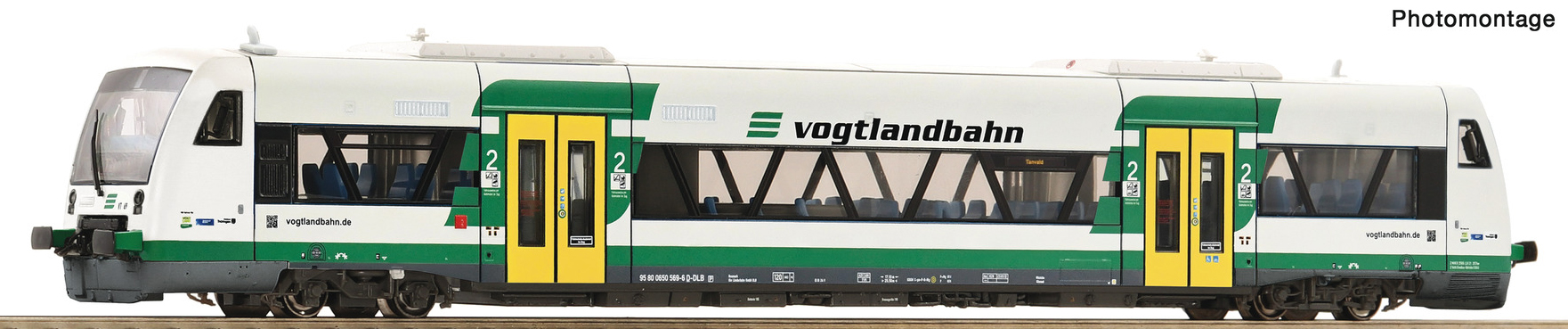 | motorový vůz v barevném schematu „Vogtlandbahn“ |